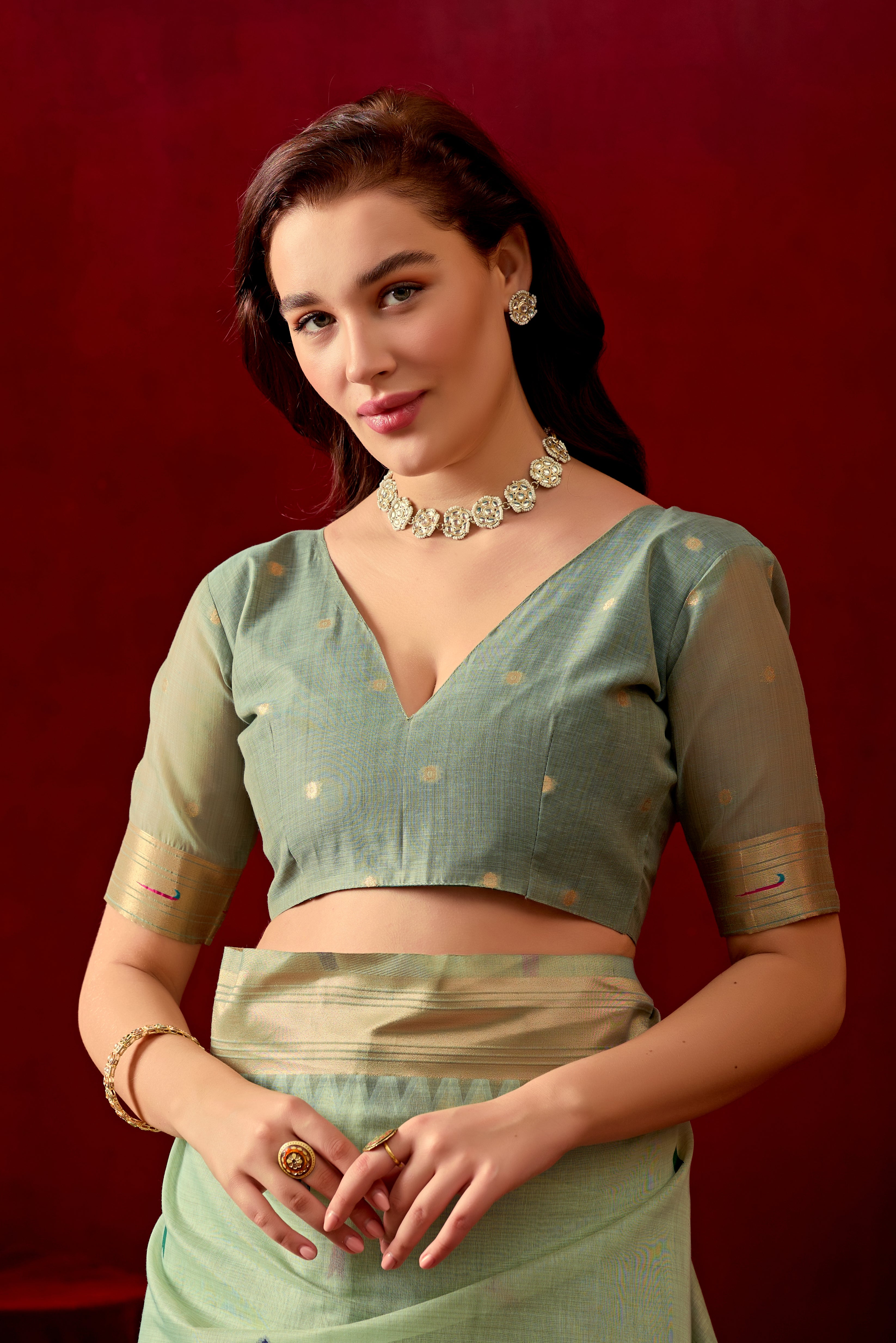 • Exquisite Paithani Silk Saree with Peacock & Floral Vine Pallu in C Green