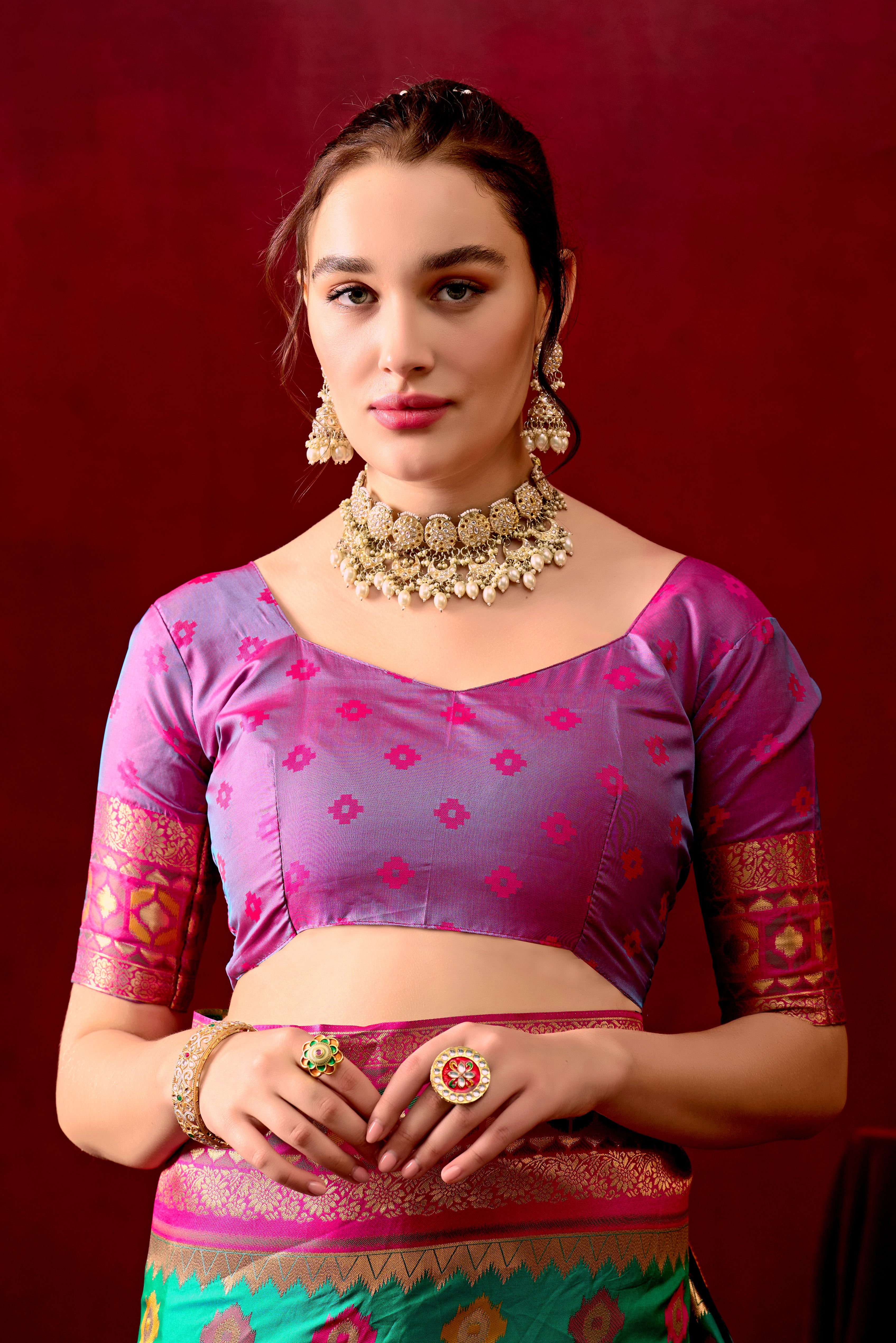 • Vasanti Pink & Rama Contrast Banarasi Silk Saree