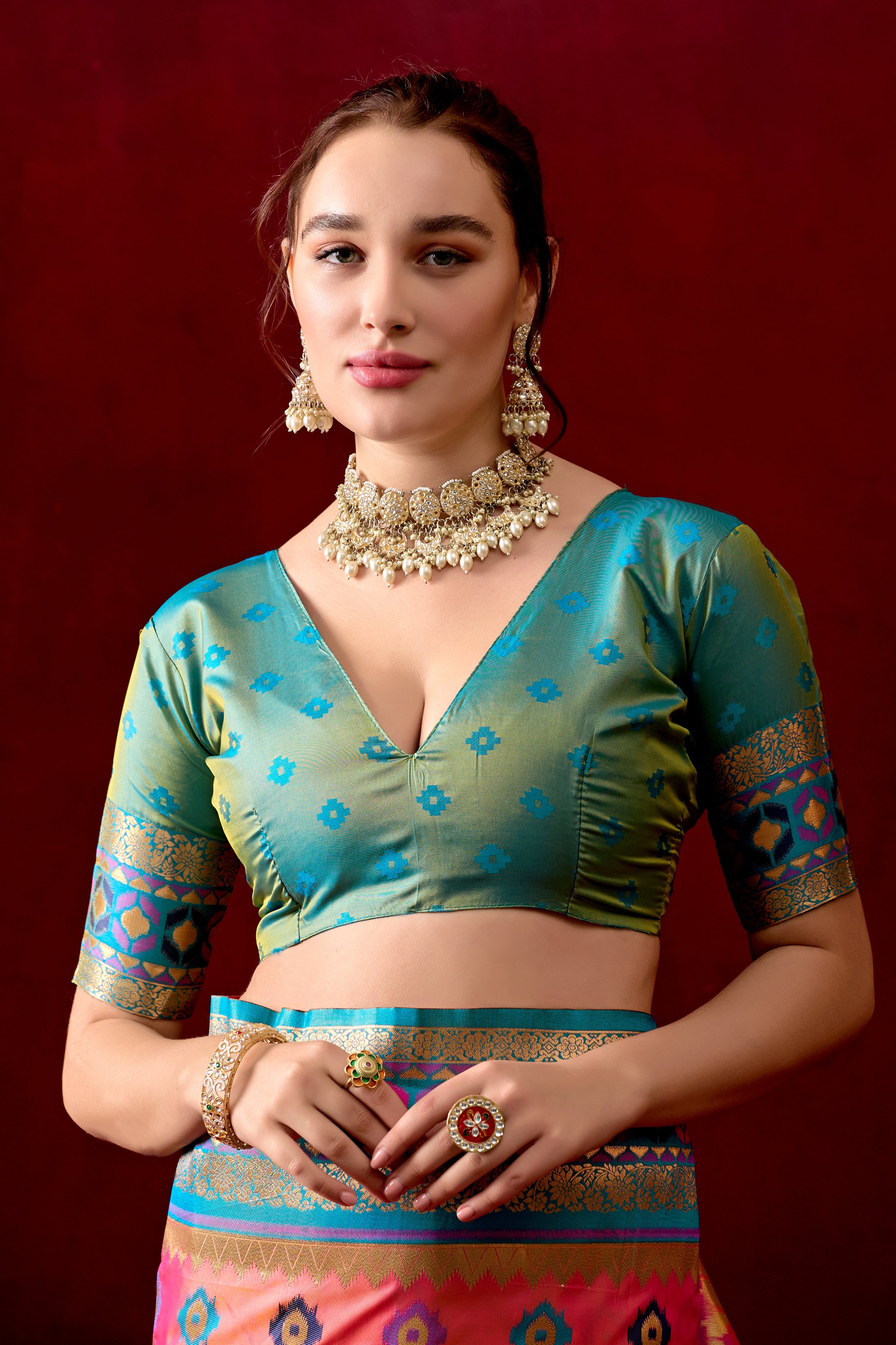 • Vasanti Pink & Rama Contrast Banarasi Silk Saree