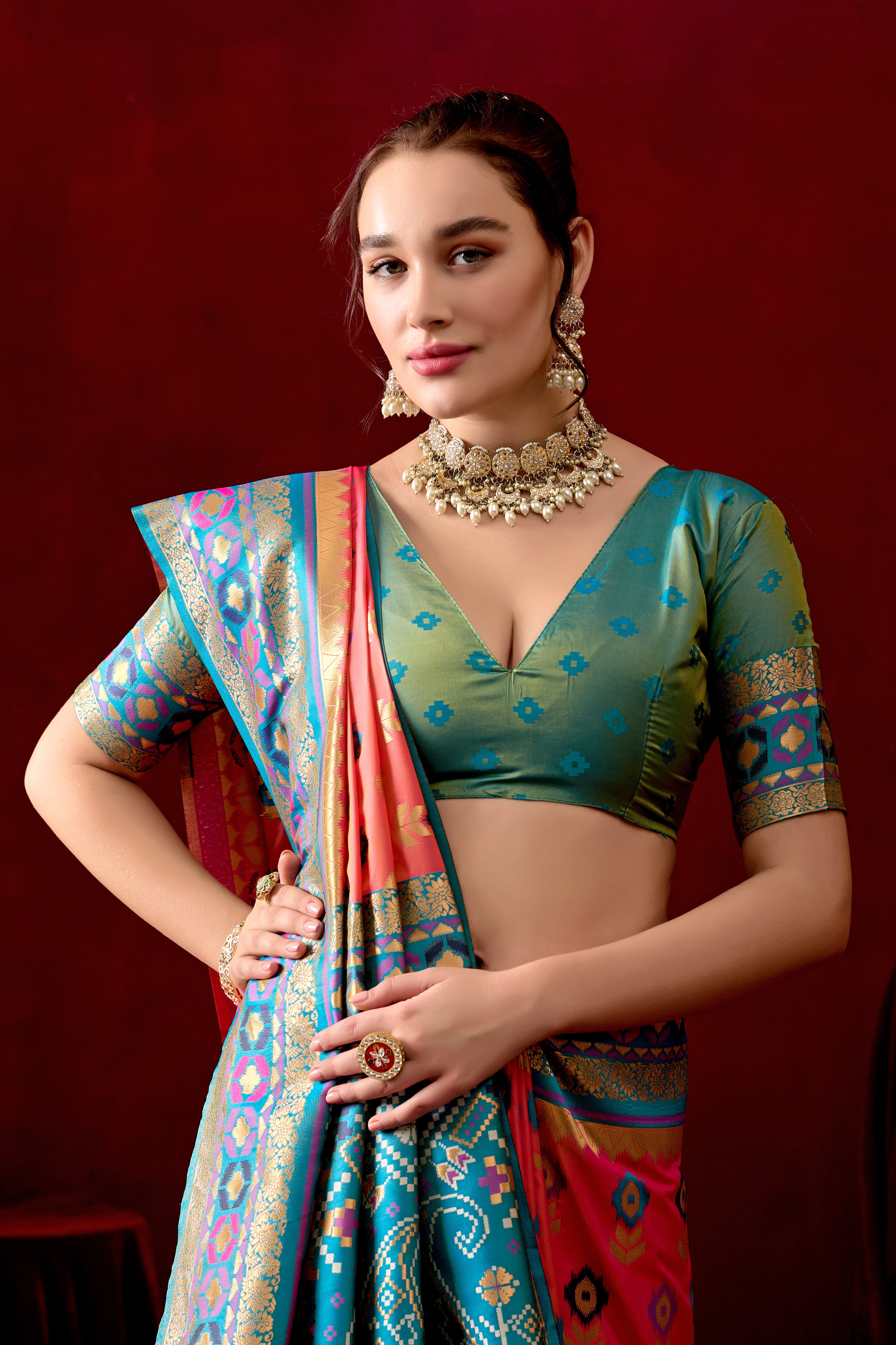 • Vasanti Rani & Rama Contrast Banarasi Silk Saree